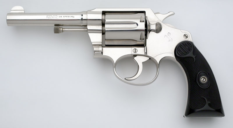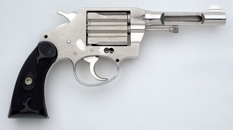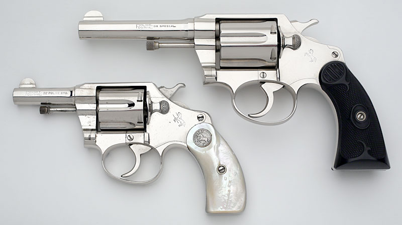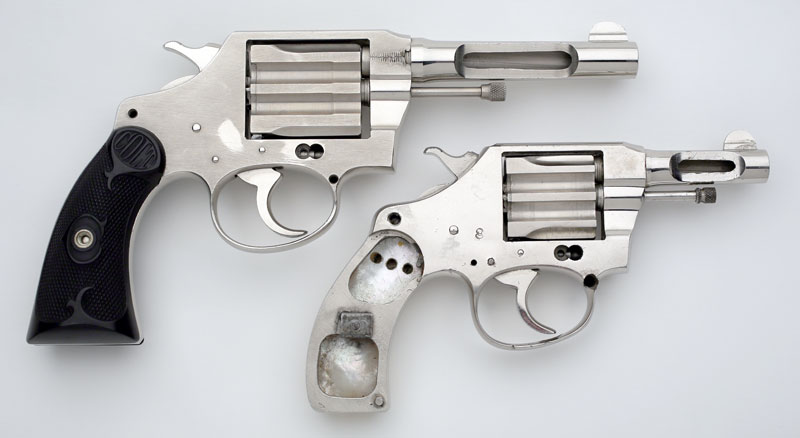 with nickel finish, a 4" barrel and mother of pearl stocks