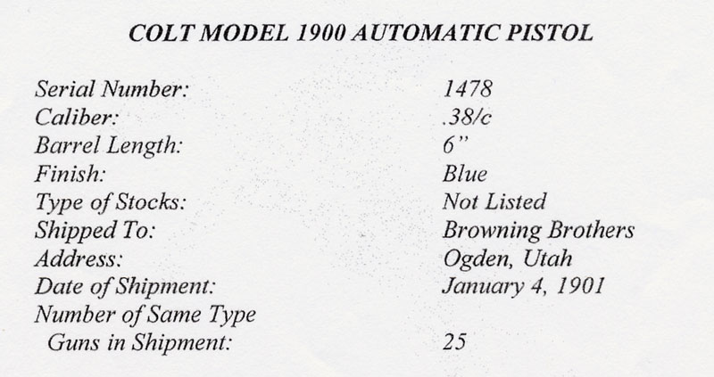 shipped January 4, 1901 to Browning Brothers, Ogden, Utah.