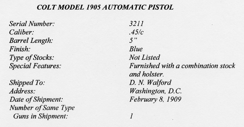 This pistol letters as a one gun shipment to D.N. Walford, Washington, DC
