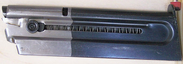 Original two-tone magazine. Hole in rear of magazine (visible in