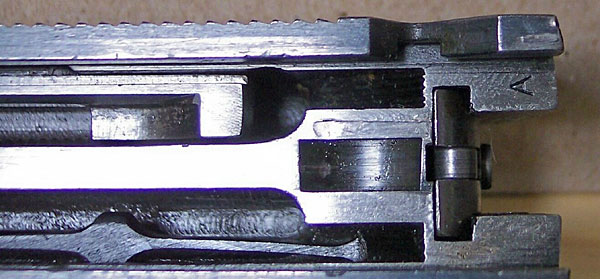 Close-up of underside of slide. Notice how firing pin