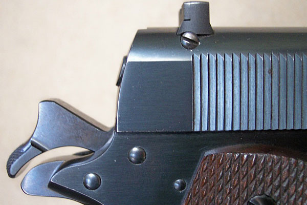 Close-up of right side slide markings and serial number.