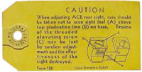 "CAUTION - When adjusting Ace rear sight, care should be taken not to raise