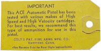 Colt Ace serial number 211 - Early Ace pistol, blue