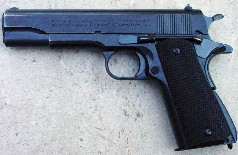 designation on the right forward flat of the frame. The "MODEL OF 1911 U.S. ARMY" is