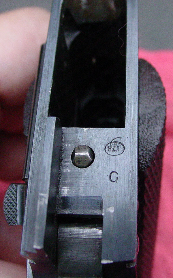 Right side of frame. The frames of the pistols in 1938 contract