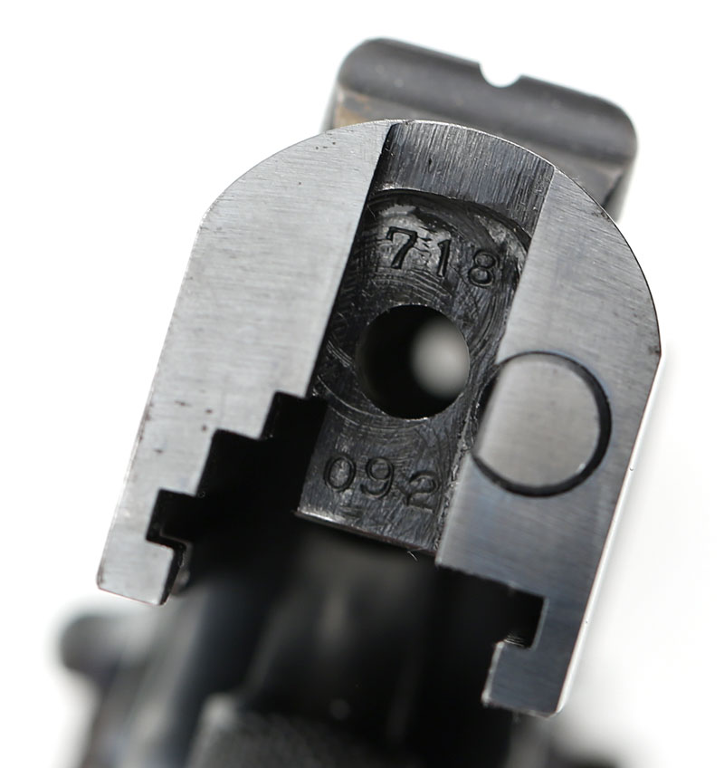 Matching serial number 718092 on rear of slide under the firing pin stop.