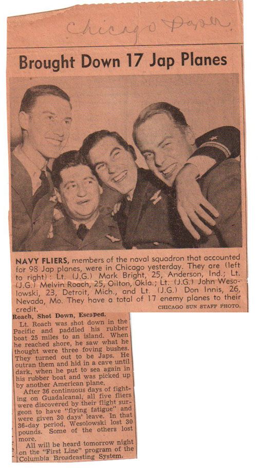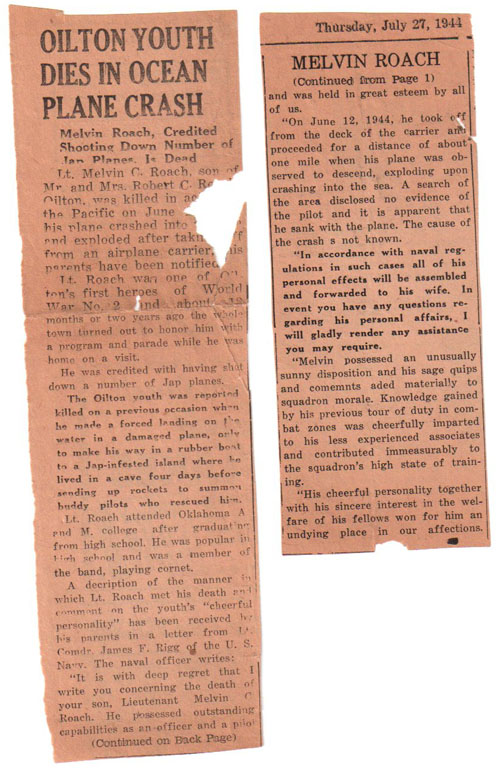 Lt. Roach was a Hellcat pilot assigned to the Yorktown,