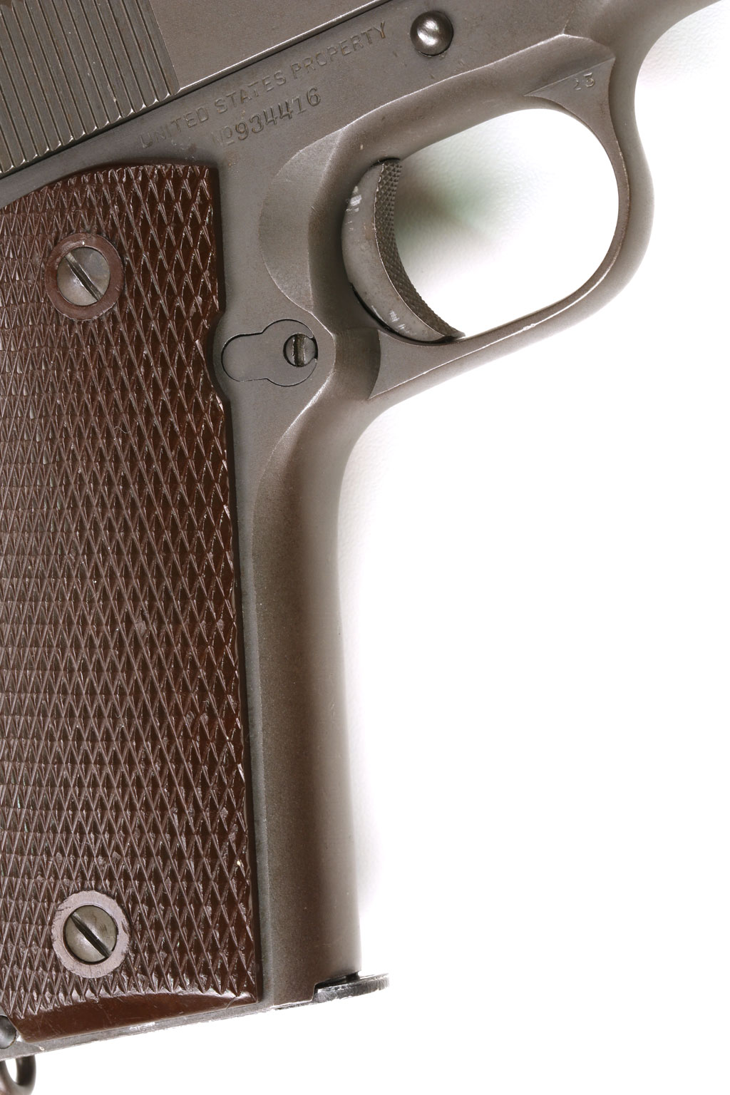 Colt Model 1911A1 U.S. Army .45 ACP Commercial/Military Serial Number 934416 - ordnance mark behind the right grip.