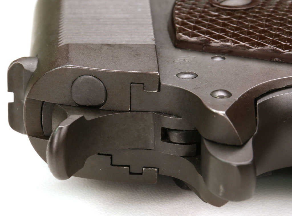 Colt Model 1911A1 U.S. Army .45 ACP Commercial/Military Serial Number 934416 - Note "P" proof mark on the left side of frame below the magazine release.  Corresponding "P" proof mark is on the top of the slide in front of the rear sight.