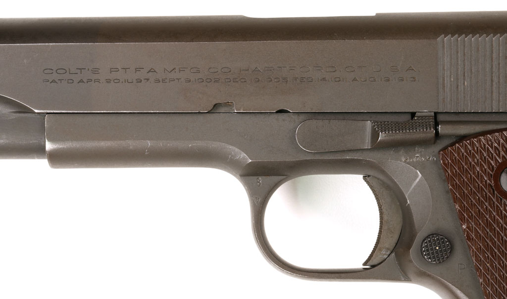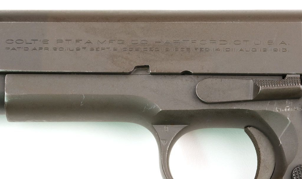 Colt Model 1911A1 U.S. Army .45 ACP Commercial/Military Serial Number 934416 - "G.H.D." inspector's marks for inspector of ordnance Guy H. Drewery.