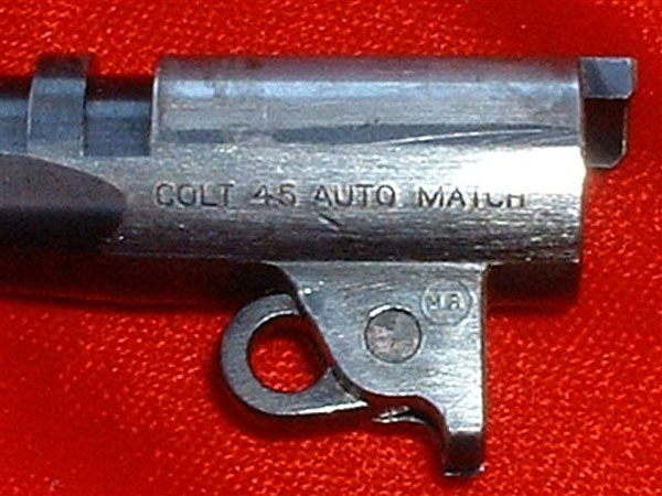 Original National Match barrel marked "COLT 45 AUTO MATCH" with "MB" in a circle on the left barrel lug.