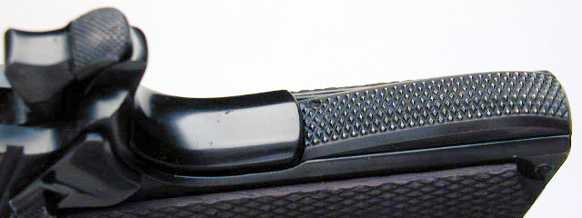 Checkered mainspring housing and grip safety.