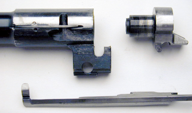 Barrel, floating chamber and milled ejector.  On the early barrels they peened a short piece of piano wire to the barrel and cut a groove into the ejector to retain the ejector in place.