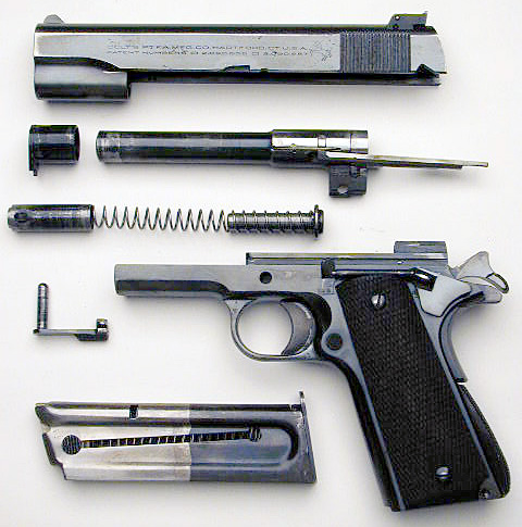 Major component parts of the Service Model Ace.  Left side pictured with two-tone magazine.