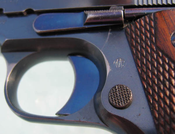 monogram stamped on the left side of the frame above the magazine release.