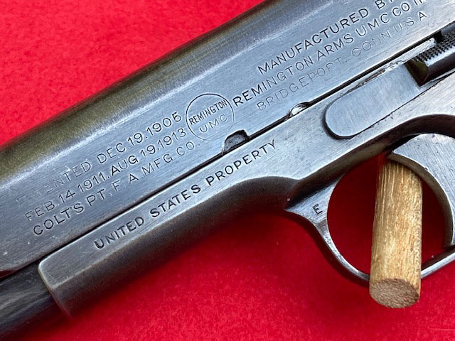 This Remington UMC contract 1911 pistol has a thumb safety with unusual