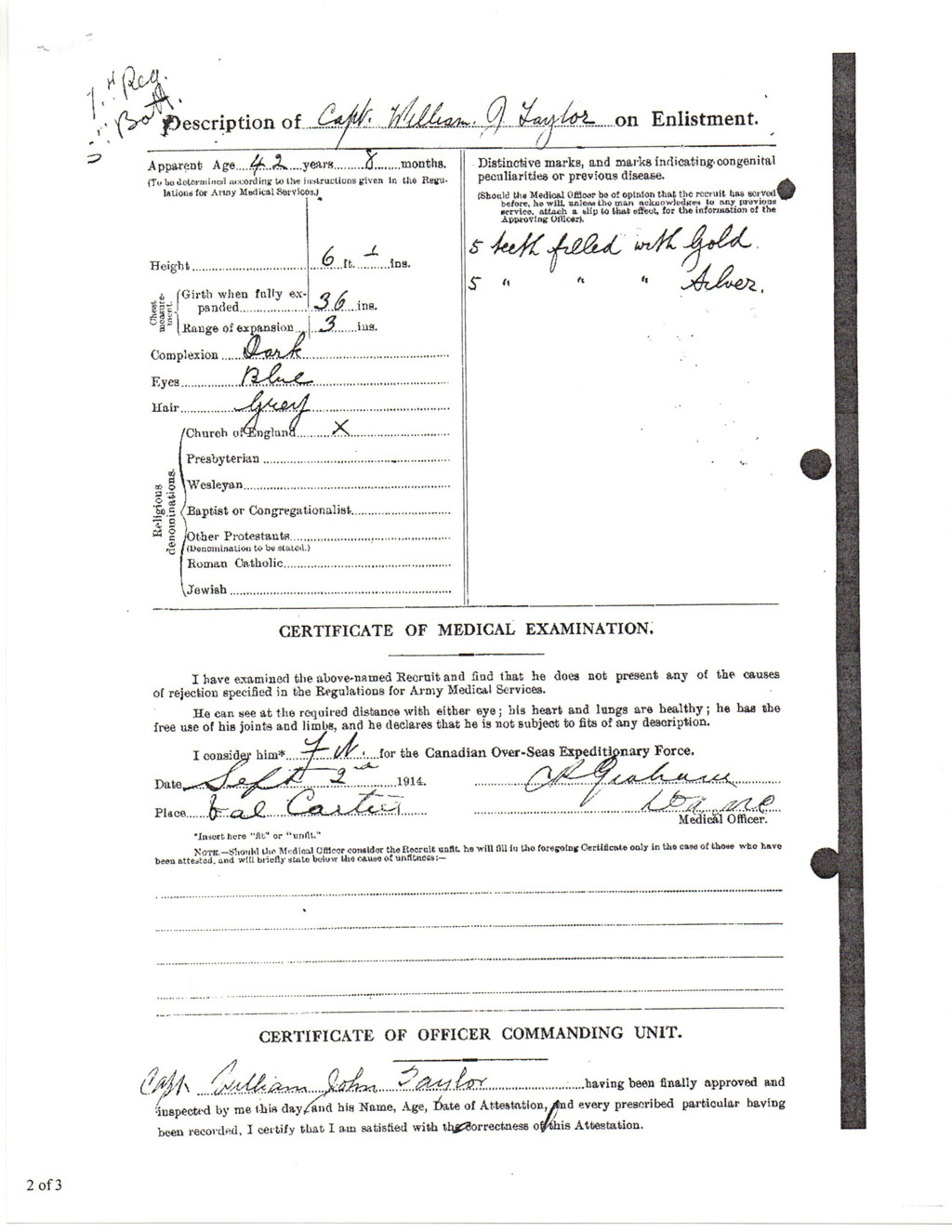WW1 1914-1918. Major Taylor was with the 1st wave of the CEF