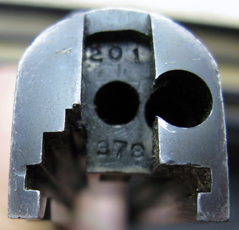 Close-up of serial number 201378 stamped under the firing pin stop.