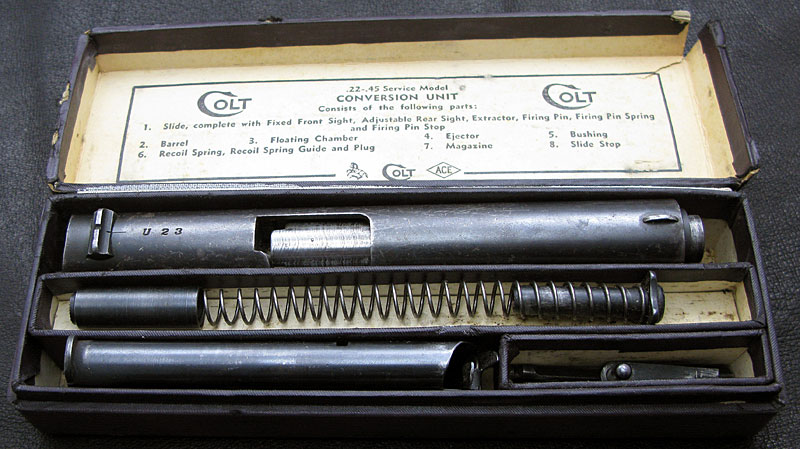 Since these units were used to convert the Service Model Ace .22 LR pistols to .45 ACP, it's very likely that this slide was taken from the .45-22 conversion unit line and used to complete Government Model C201738 prior to shipment.