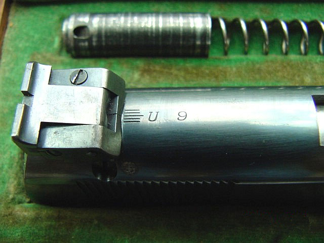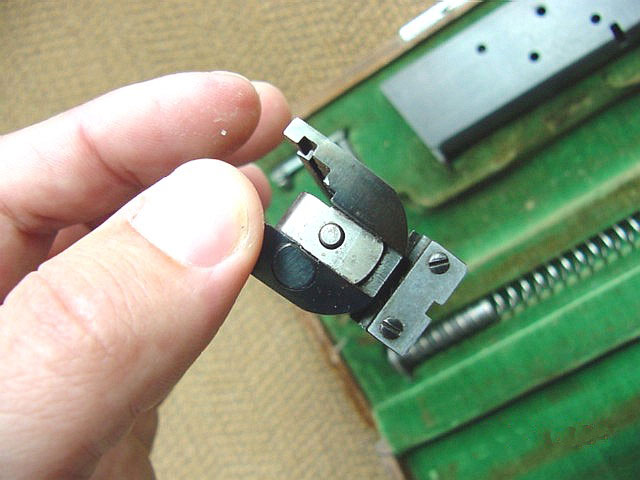 Rear view of slide, firing pin, firing pin stop and Stevens sight.