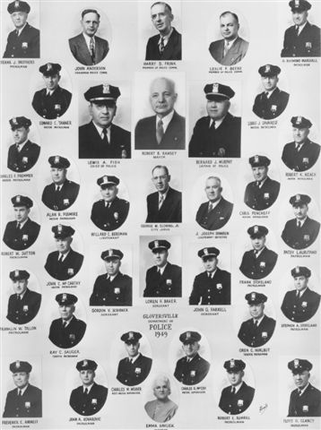The membership list is from a picture of the Gloversville Police Department in 1931. The original picture is on display at the City of Gloversville and is part of their Archives collection. The picture is four rows of portraits, five across with the Chief and Captain having slightly larger pictures than the others. It was reproduced from Fulton's site from James Morrison, Historian for the City of Gloversville. (Copyright © 2000 James Morrison & Jeanette Shiel All Rights Reserved. ) |
