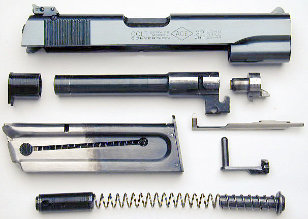 All component parts of the disassembled conversion unit showing right side of slide.