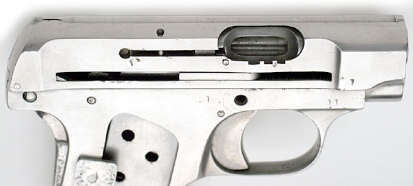 Close-up of the right side showing the numbers on the slide and the frame. Notice how barrel is cutaway.