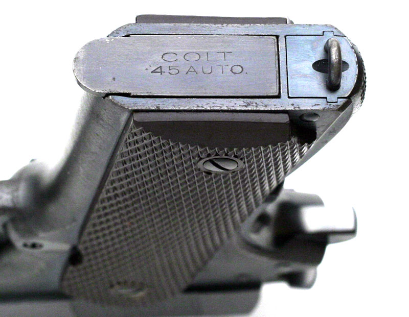 Base of full blued magazine marked "COLT" over "45 AUTO"