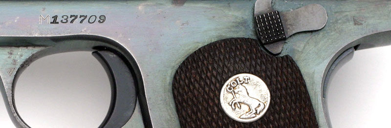 Colt 1908 .380 caliber sidearm, serial number M137709. Shipped to