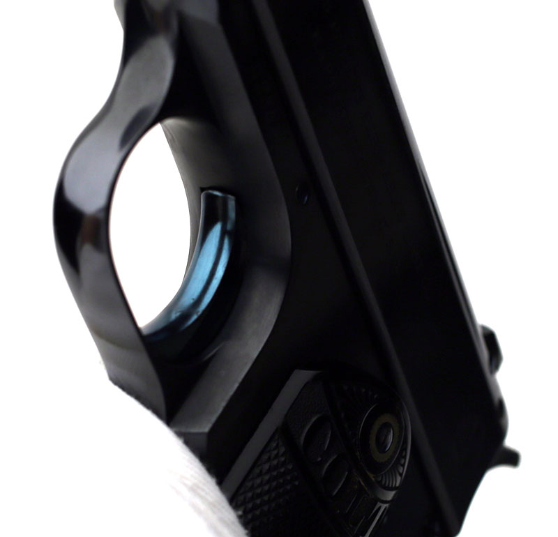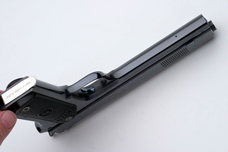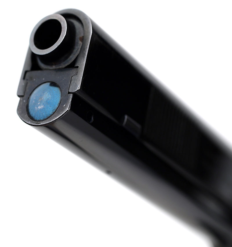 Top of slide and chamber through ejection port showing the early original high polish blue.