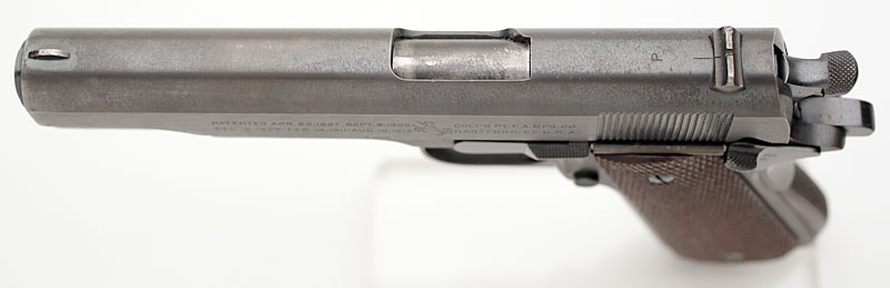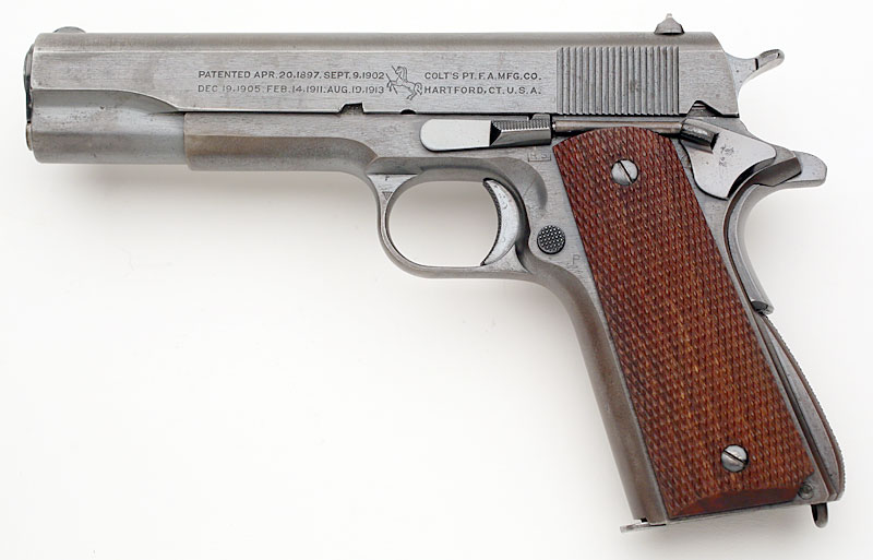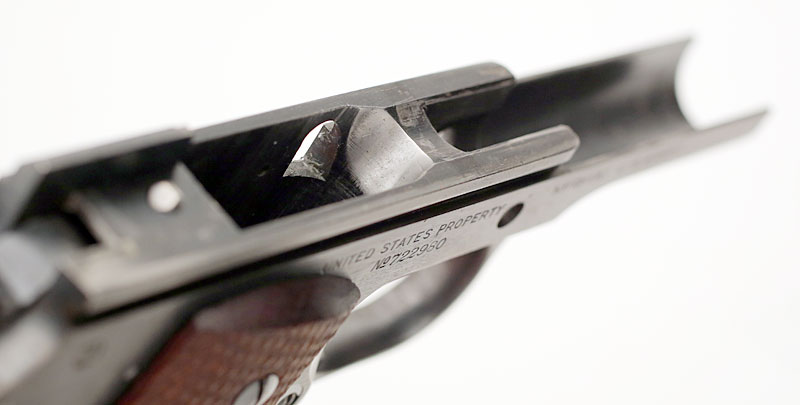 Colt Model 1911A1 .45 ACP serial number 722980 (ca. 1941) - Feed ramp is in the white.