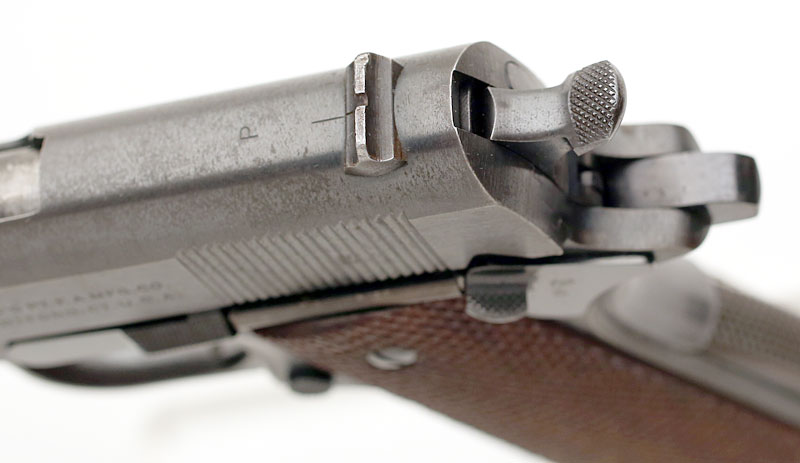 Colt Model 1911A1 .45 ACP serial number 722980 (ca. 1941) - The barrel hood.
