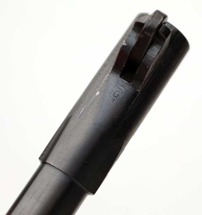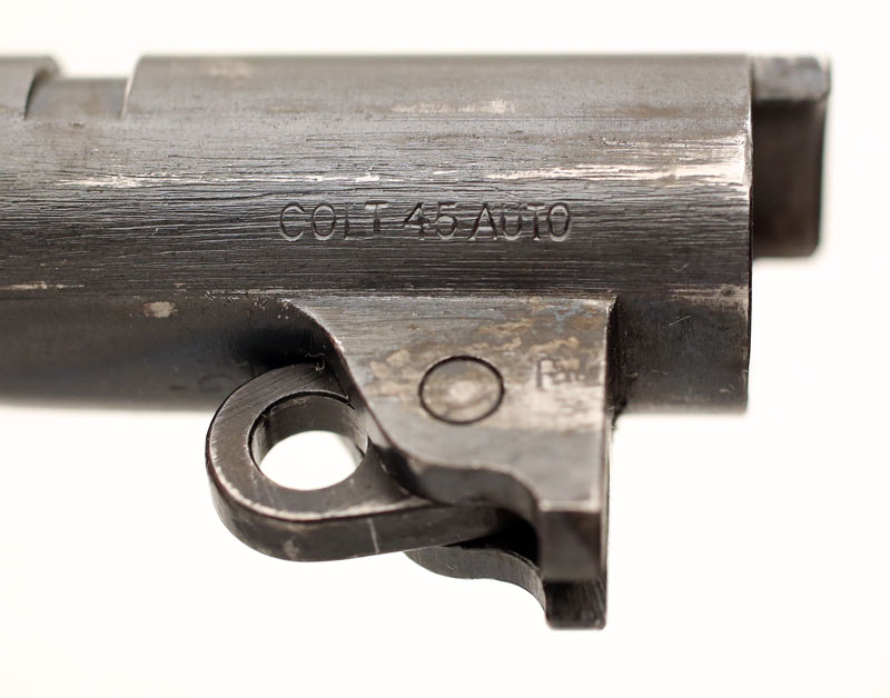 Colt Model 1911A1 .45 ACP serial number 722980 (ca. 1941) - Small G in front of barrel lug.