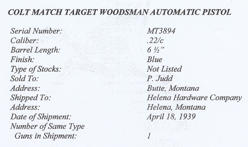 Colt Woodsman Bullseye Match Target .22 LR serial number MT3894 -Top of barrel marked: