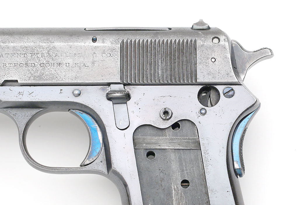 Colt 1907 .45 ACP Auto Loaded Cartridge Indicator - to show that chamber is loaded is located on the left radius of the slide.