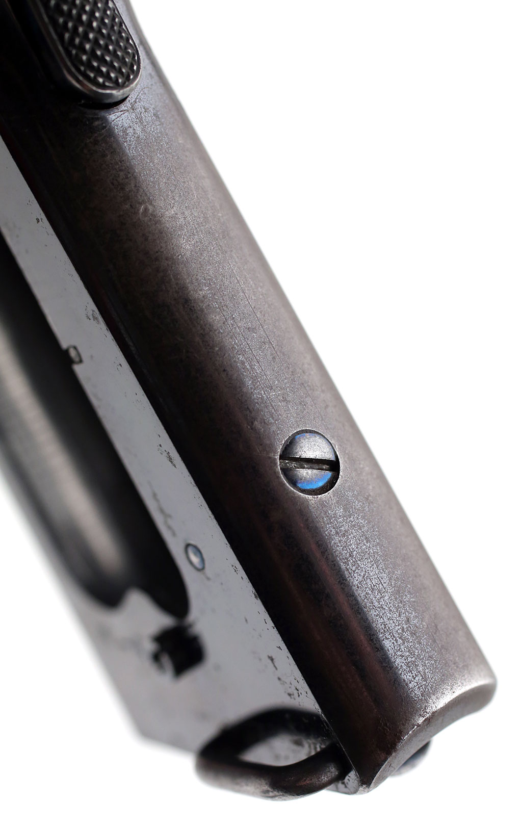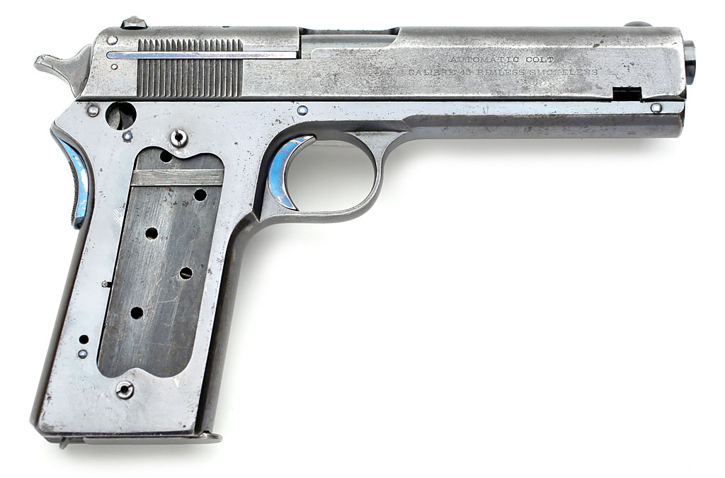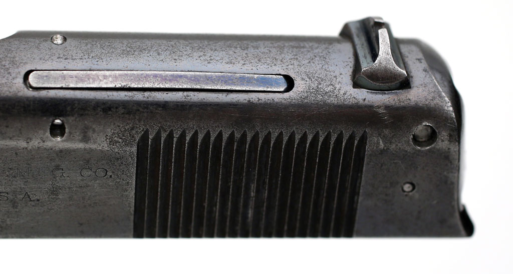 Colt 1907 .45 ACP - First type checkered and fire blued grip safety.  This part was replaced with a later type grip safety on the majority of the M1907 Trials guns at the request of the Army.