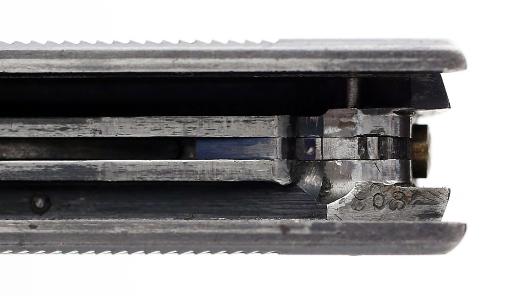Model 1907 Military Number W-42 .45 ACP - Right side, cutaway to show interaction between hammer, sear and early first type grip safety.