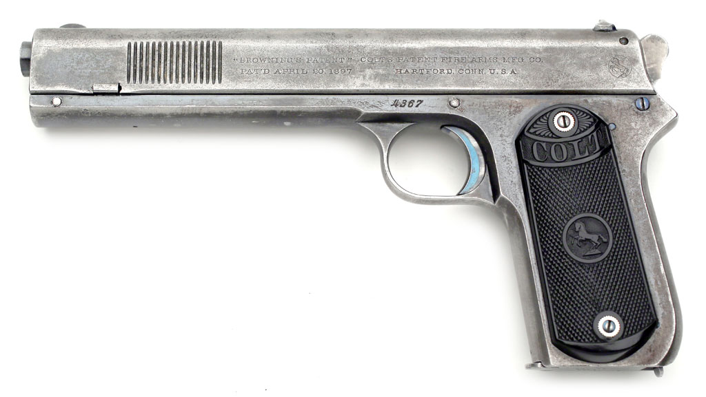 Colt 1902 Serial Number 4367 - bronze firing pin and early style checkering on hammer.