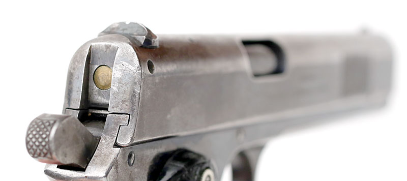 On these early Sporting Models, the trigger, pins and screws were fire blued. The hard rubber grips were standard on these guns from the beginning of production. (Another carry-over from the Model 1900)