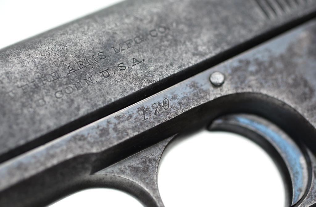 Colt Model 1900 Sight Safety Serial Number 170 - Close-up of matching serial number inside slide.