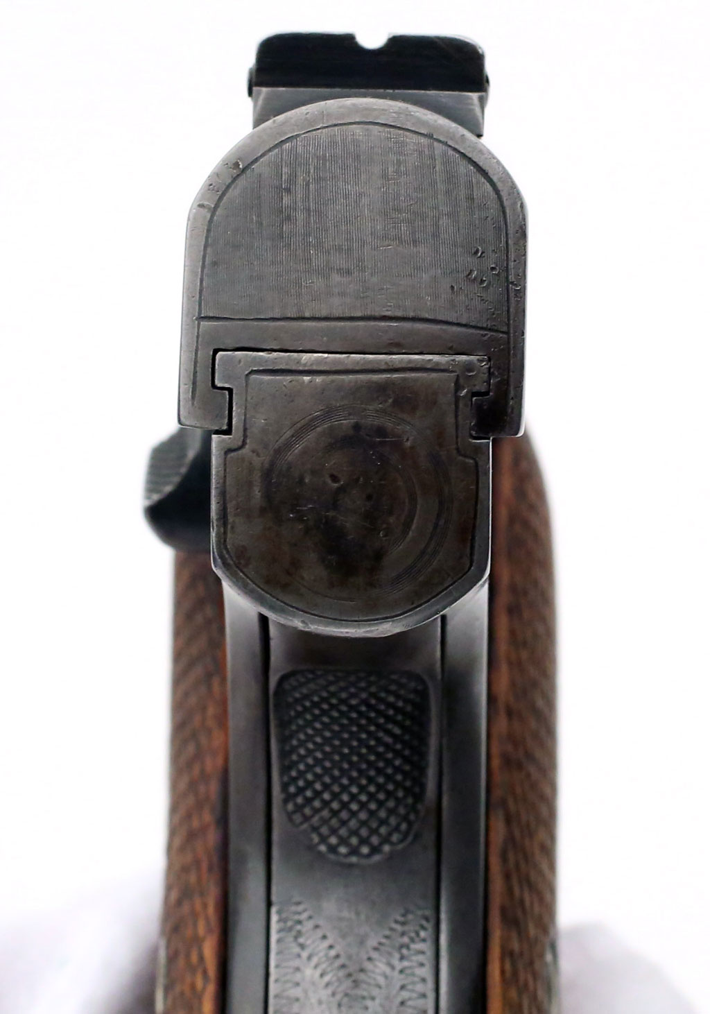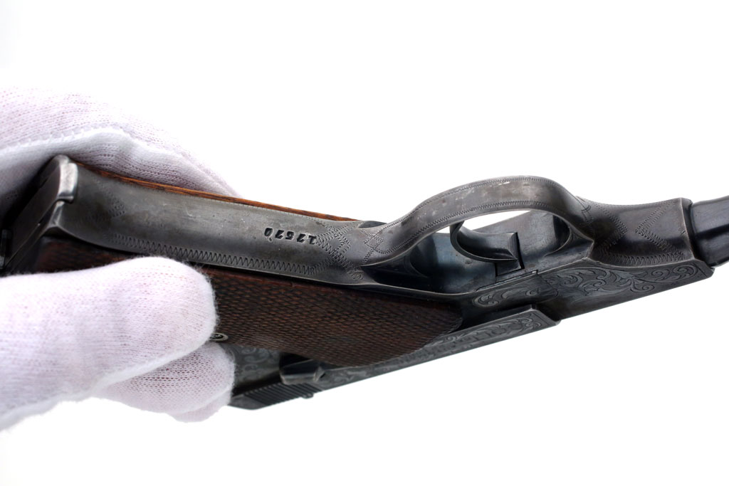 Colt Automatic Target Pistol .22 LR Serial Number 17570 - Gough characteristic zig-zag engraved lined border on underside of frame and trigger guard.