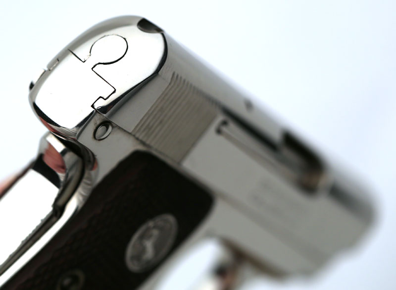 Colt 1908 Vest Pocket .25 ACP serial number 358231 - rear of slide and frame featuring Gough's signature five pointed star and distinctive lined background.