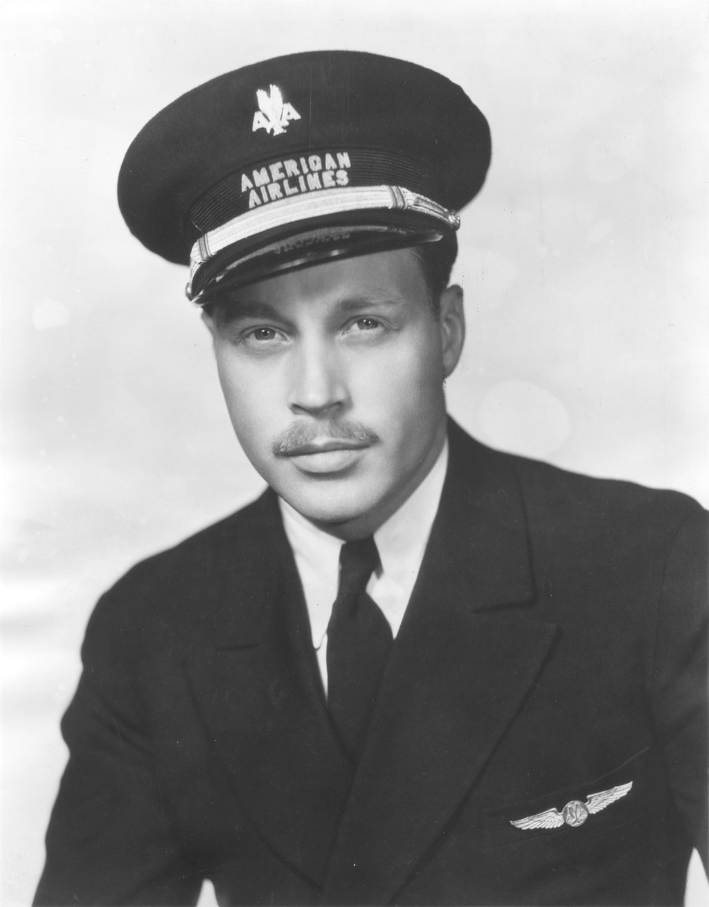 Colt Pocket Hammerless 1908 .380 ACP serial number 100046 (ca. 1928) - Nickel plated Model M .380 with original S.D. Myres holster carried by pilot Russel Arden, an airline pilot in 1930 when he flew for what became American Airlines. He was required to carry a pistol when transporting the mail and also when he was with a civilian pilot for the Air Transport Command during WWII. There are no specific markings on the gun (aside from the owner's own identification number: V713669), however, the leather S.D. Myres holster has an AA stamp (for American Airways), AM33 (which means Airmail Route 33).