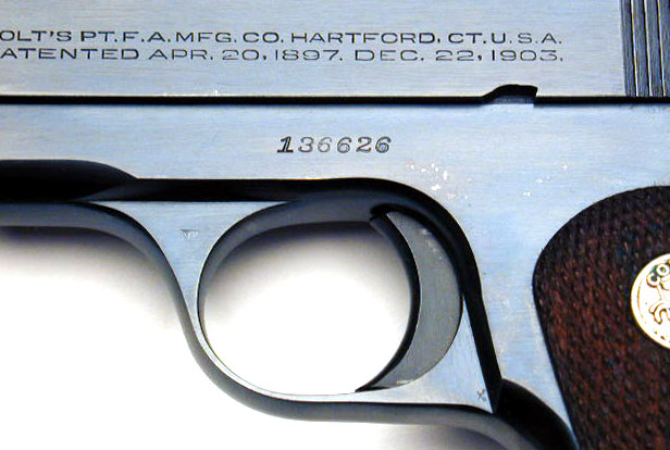 Colt semi-automatic pistol serial number 136626 wrapped in a military