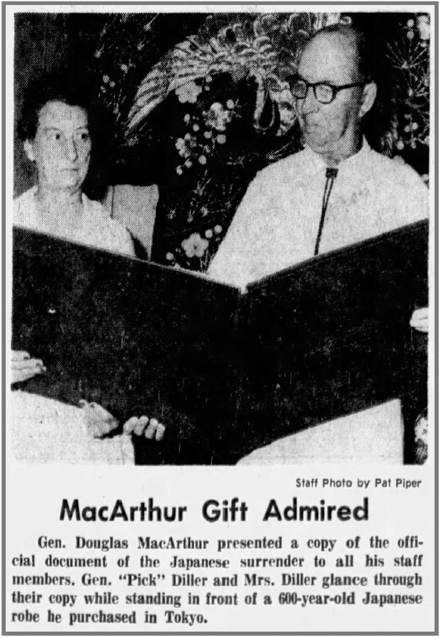 of he Japanese surrender to all his staff members. Gen, "Pick" Diller and
