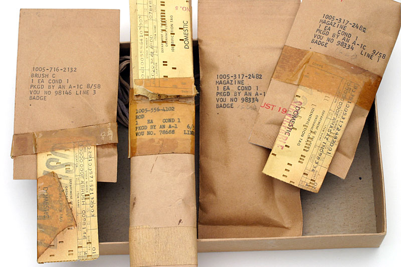 Much accompanied this set, including original wrapped accessories with IBM style punch card inventory tags for cleaning brush (1005-716-2132), cleaning rod (1005-556-4102) and two magazines (1005-317-2482).