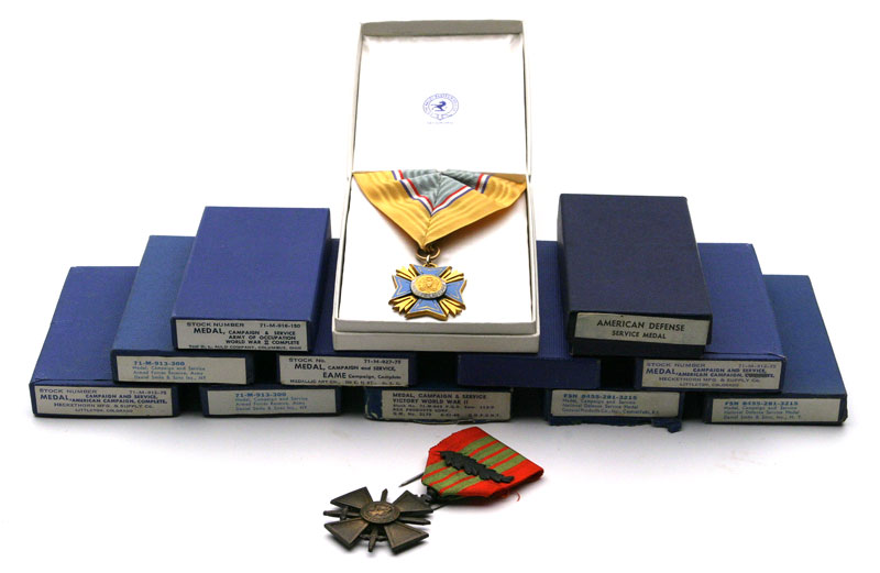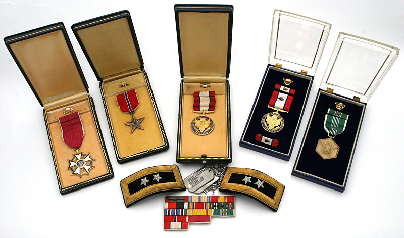 Major General Oliver C. Harvey's medals (Note: at center is Major General Harvey's Distinguished Service Medal he earned as a Colonel in 1944 -- see citation below.)
